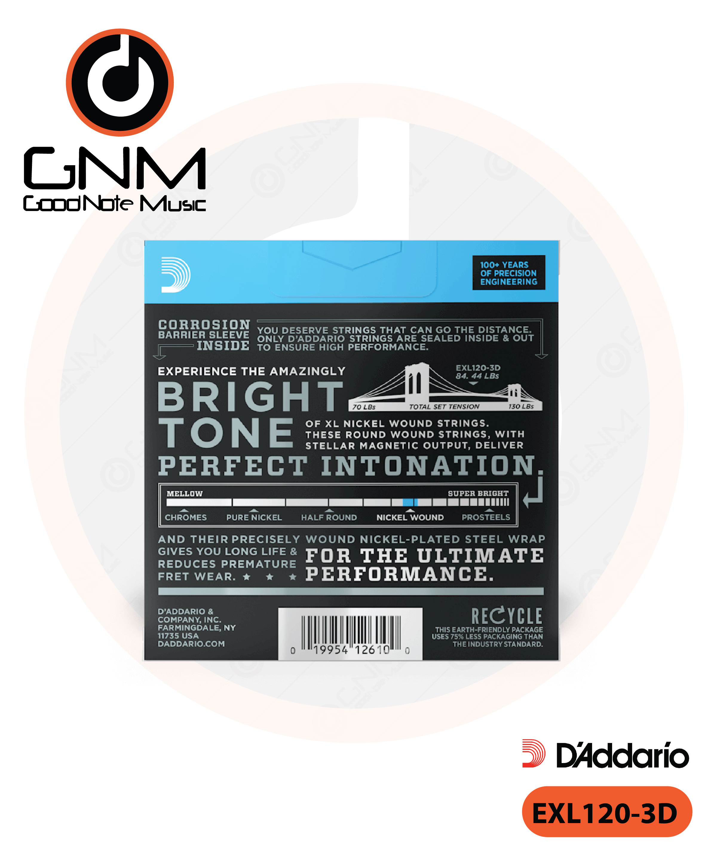 สายกีตาร์ไฟฟ้า Daddario รุ่น EXL120-3D (แพ็ค3)